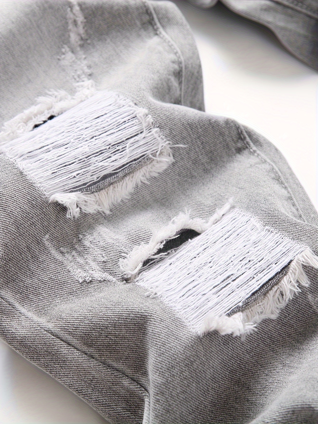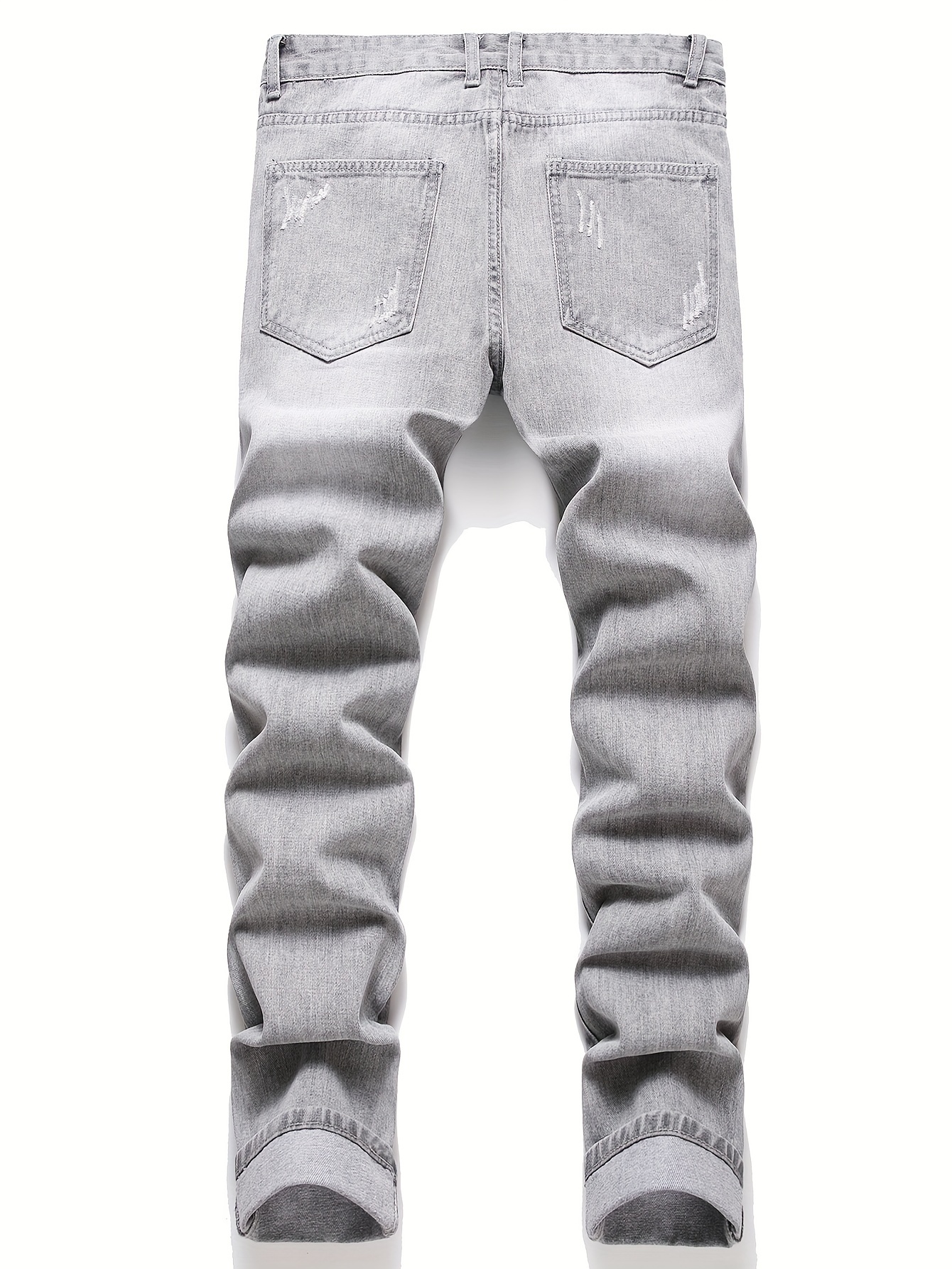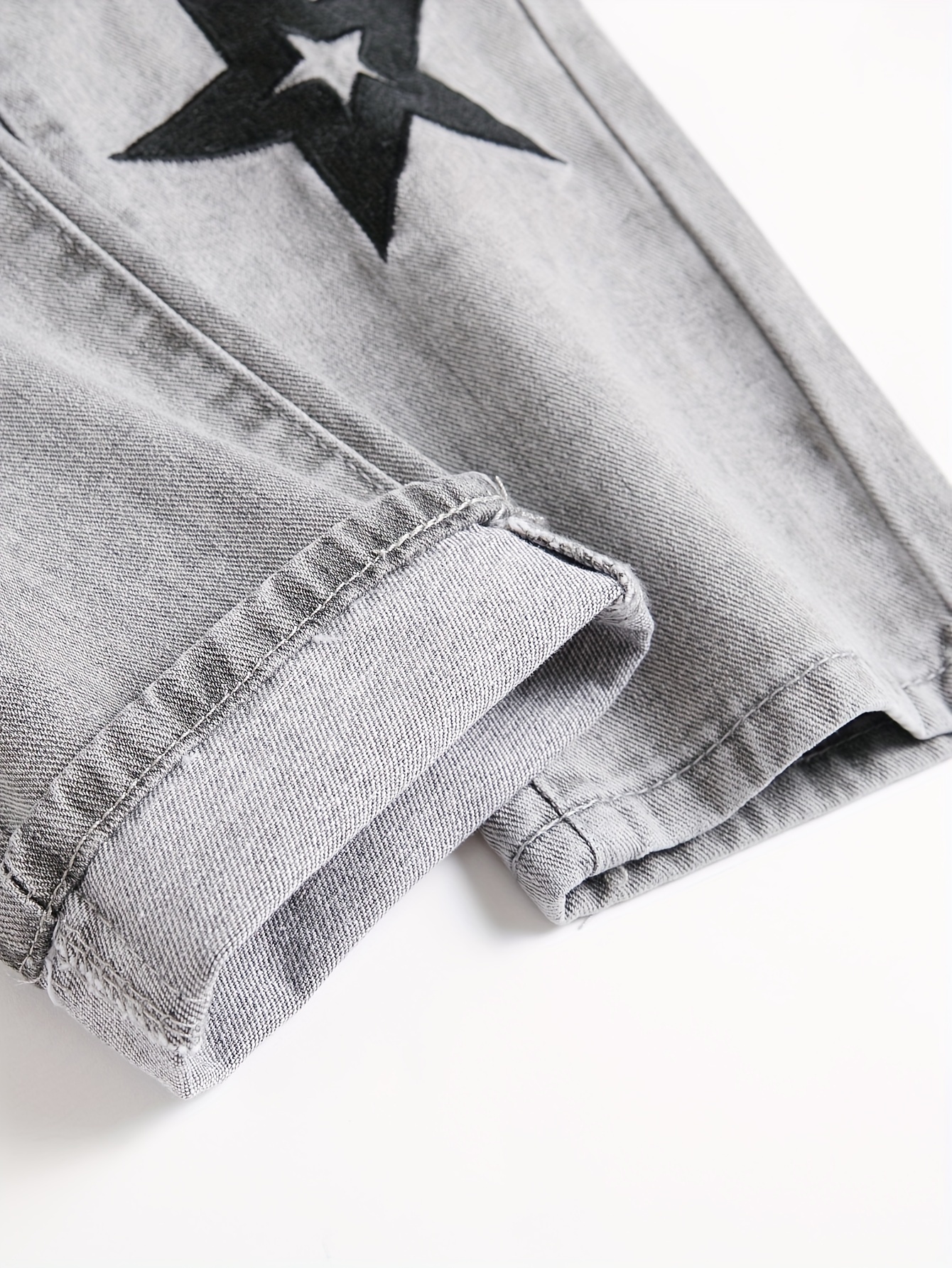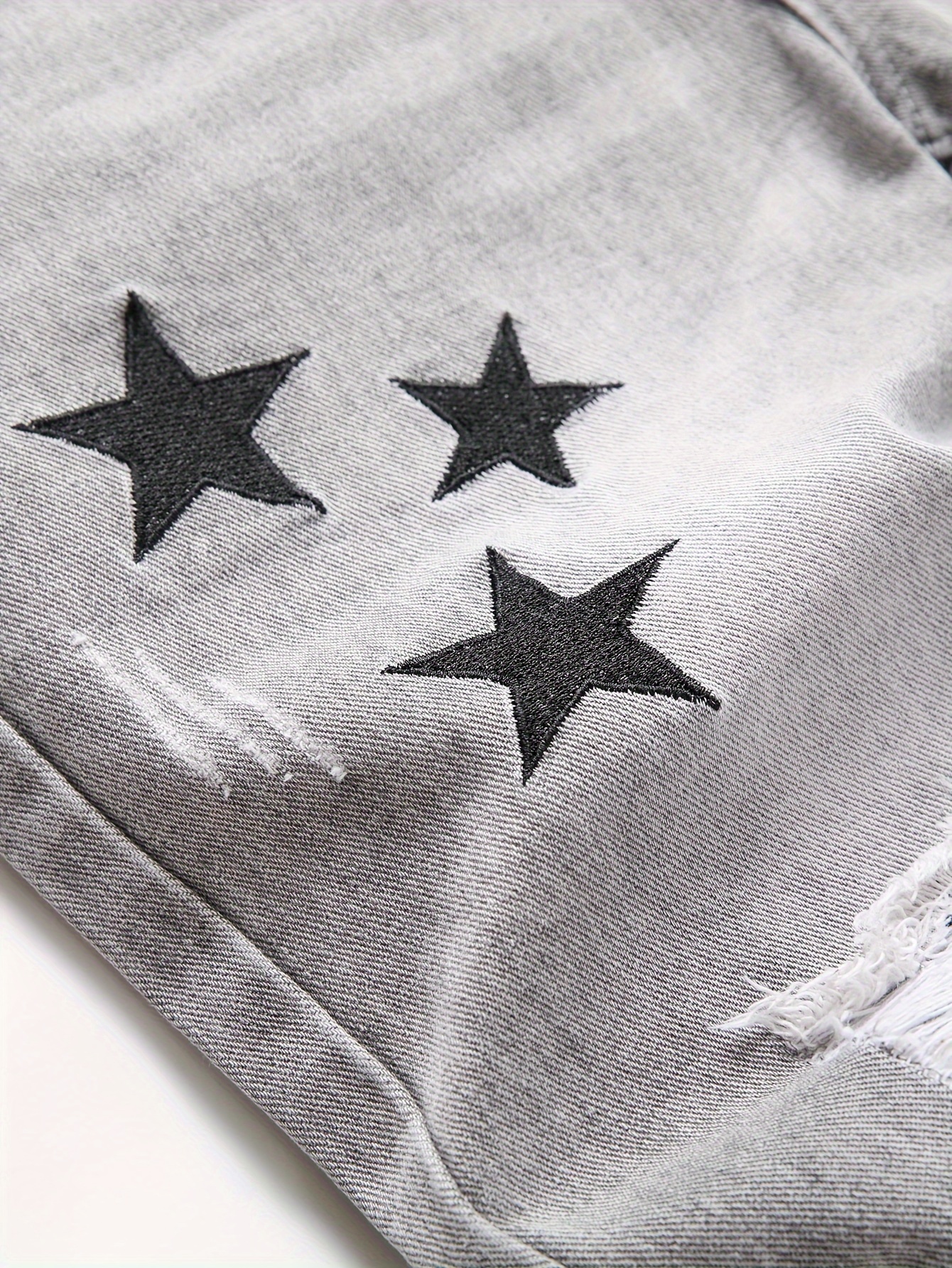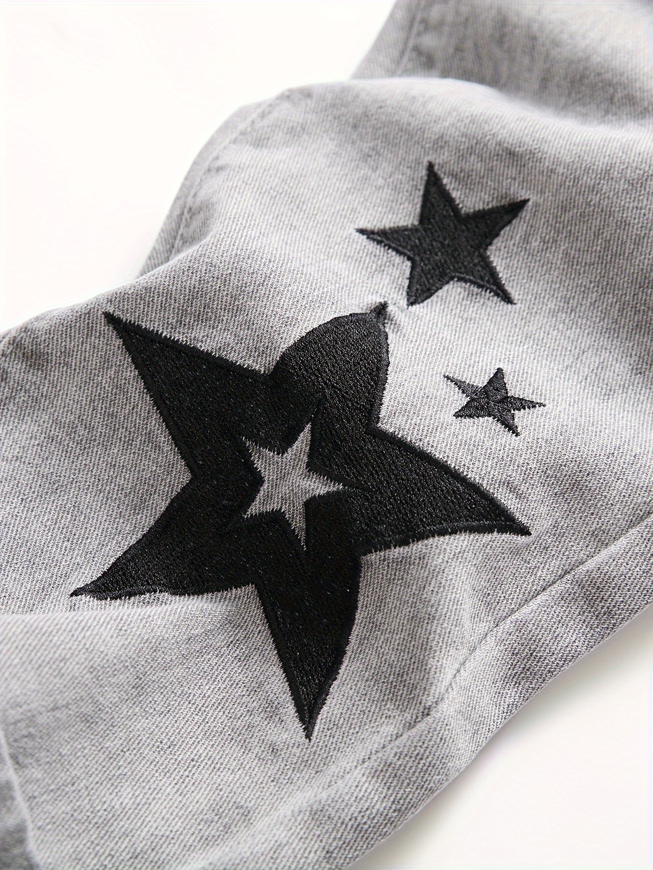 Elevate Your Street Style With These Men Star Print Ripped Jeans, Featuring A Unique Star Embroidery Design That Adds A Touch Of Edge To Your Outfits.